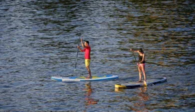 - Wer es sportlich mag, nutzt das Beachvolleyballfeld oder leiht sich ein Stand-up-Paddleboard aus.