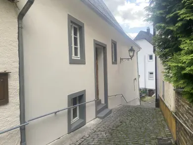 Das sanierte Ferienhaus liegt im alten Ortskern direkt am Aufgang zur Kirche und zählt zu den ältesten Gebäuden im schönen Moselort Bremm. Das Haus aus dem 17. Jahrhundert ist in den letzten Jahren umfassend saniert worden. Dabei wurde großen Wert darauf gelegt, den unsprünglichen Charakter wieder herzustellen und erlebbar zu machen. Das Haus hat viel zu erzählen - von der Nagelschmiede bis zum Winzerhaus. Die Geschichte des Hauses zwischen Fachwerk und Naturstein weiterzuschreiben wird spannend und mit der Nutzung als Ferienhaus geht es in eine neue Epoche.